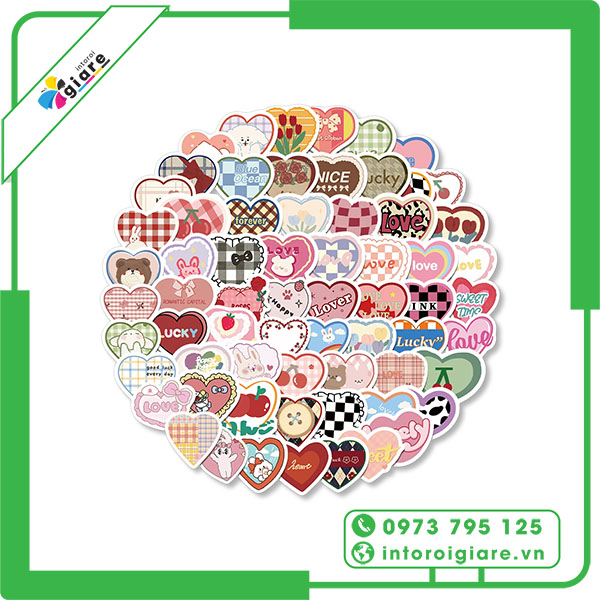 Tóm lại, sticker trái tim không chỉ là hình dán mà còn là biểu tượng của tình yêu, sự kết nối và sáng tạo, với đa dạng mẫu từ cute dễ thương đến aesthetic giúp bạn tỏa sáng trong mọi ngữ cảnh. Việc chọn quy cách in ấn phù hợp – từ chất liệu decal PVC bền bỉ, công nghệ Offset sắc nét đến gia công ép kim sang trọng – sẽ mang lại sản phẩm chất lượng cao, giá trị lâu dài. Đừng chần chừ, hãy liên hệ Intoroigiare.vn ngay hôm nay để in sticker trái tim theo yêu cầu, sở hữu những hình dán trái tim độc đáo và nhận ưu đãi đặc biệt.