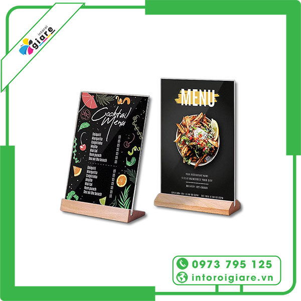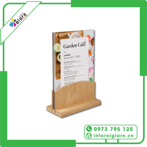 Mẫu menu đứng đế gỗ