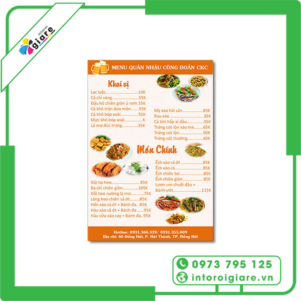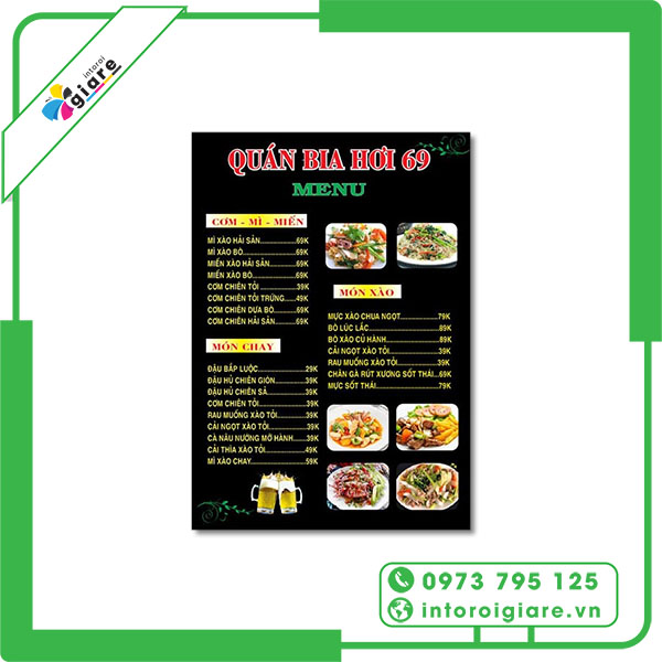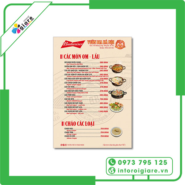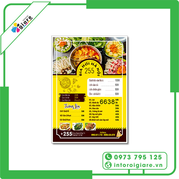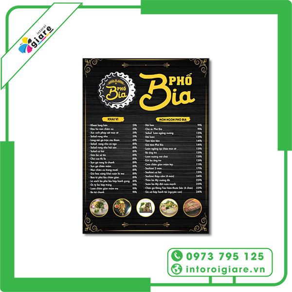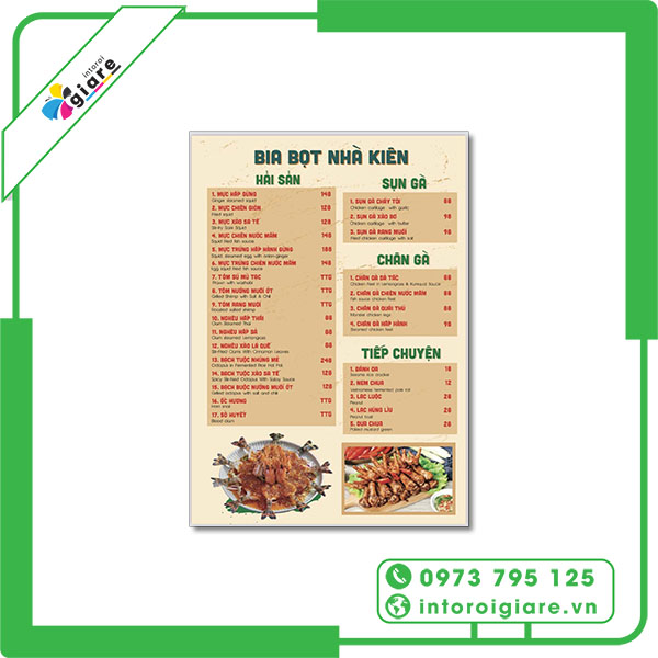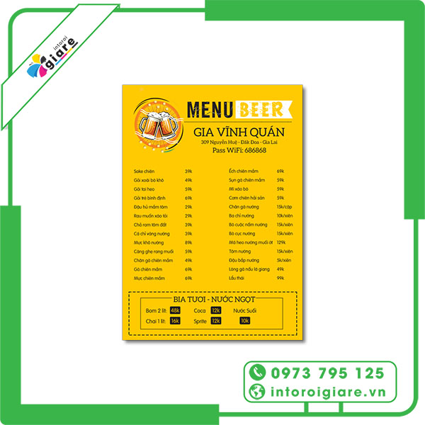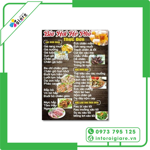 Quy Cách In Menu Quán Bia Hơi Tại Intoroigiare.vn