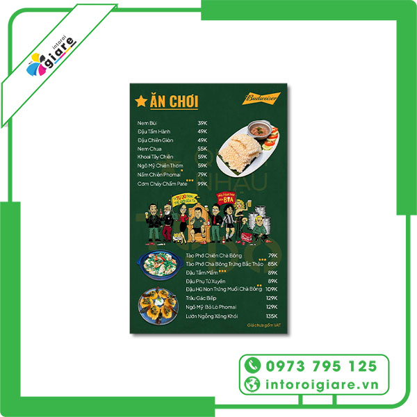 Quy Cách In Menu Quán Nhậu Tại Intoroigiare