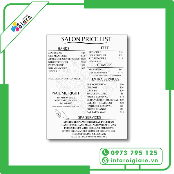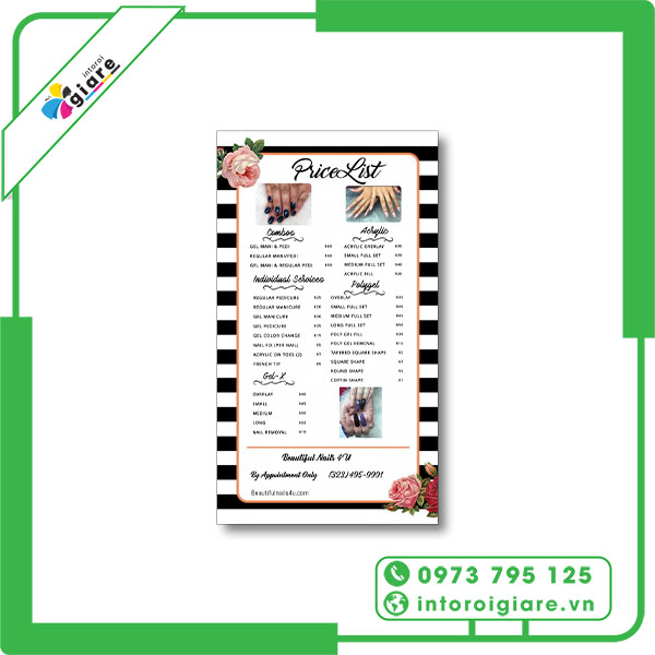 Quy Cách In Menu Tiệm Nail Tại Intoroigiare.vn